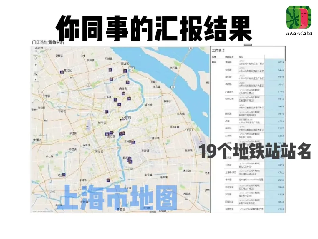 你的同事,用一份上海地鐵數據,一份星巴克咖啡和瑞幸咖啡的地理位置數據,得到的工作成果彙報是這樣:
