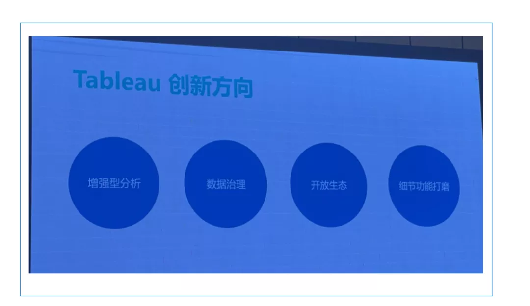 2021年,Tableau在上海的零售行業站線下研討會上公開了創新方向:增強性分析,數據治理,開發生態,細節功能打磨。