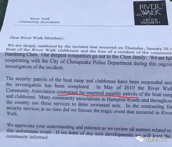 然而小區的保安,安約翰納•克倫威爾(Johnathan Cromwell),發現了老陳的行蹤,覺得華人在如此高檔小區似乎有些奇怪,於是上前盤查。言語衝突之後,老陳準備開車離開。沒想到這名保安竟然連開五槍,當場將老陳擊斃於駕駛座。
