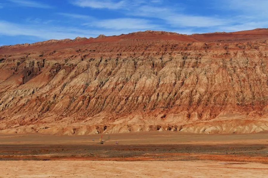 來到火焰山下,可以看到如火焰般燃燒的磚紅色褶皺,看到熱浪在山前晃晃悠悠、騰然而升的樣子,彷彿進入火爐一般,熱得讓人感到窒息。