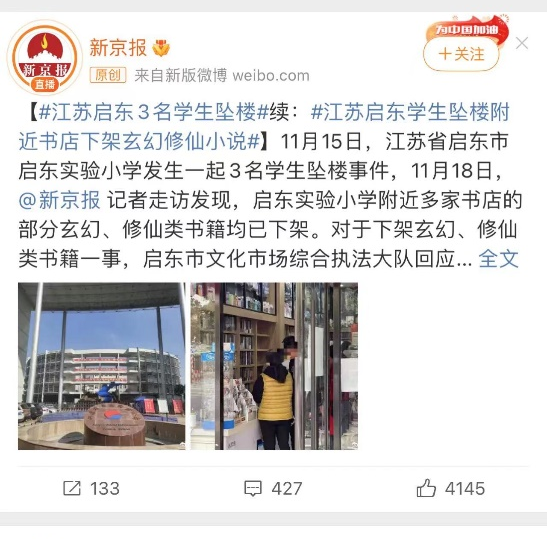 啓東3名學生墜樓,是玄幻修仙“毒害”了孩子嗎?_風聞