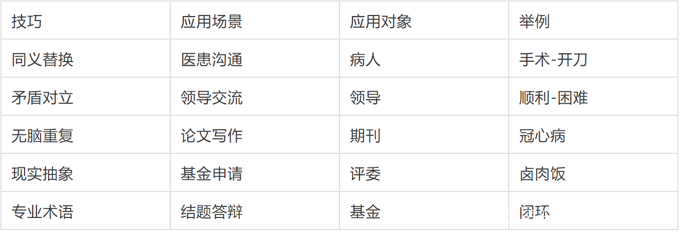 以上,就是無腦重複的技巧要點。這一技巧,其實廣大醫生和醫學生已經無師自通,廣泛應用在了論文撰寫、基金寫作等工作中,達到湊字數的目的。