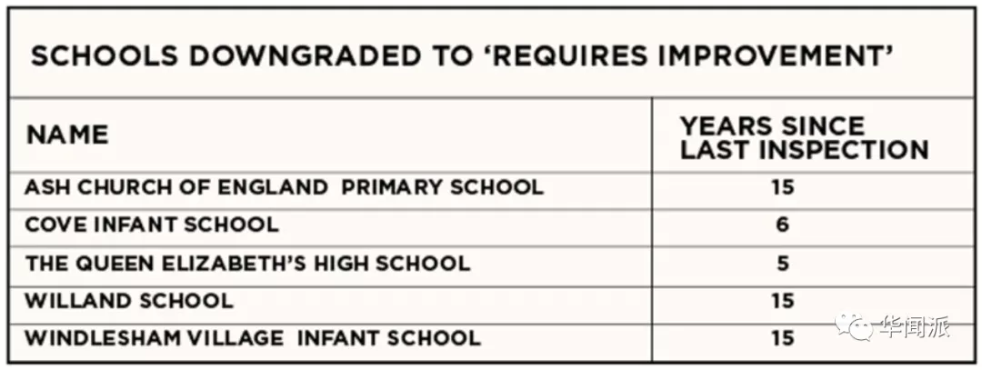 在這些學校中,大多數學校被降了一個等級,變成了“良好”(Good),而有5所學校被降了兩個等級——從“優秀”降為了“需要改進”(Requires Improvement)。