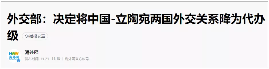 於是,我們就看到:11月21日,中國宣佈將中立兩國外交關係降為代辦級。
