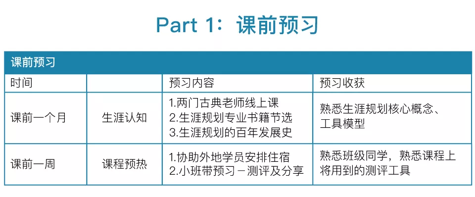 只是這也是一條充滿“試錯成本”的路,有購買過課程的學員就認為這些“職業生涯培訓”和“成功學”本質上並沒有差別。分為線上和線下兩大部分的課程裏,以“生涯”為主題的預熱課程就被安排了一個月的課時內容,接下來是自我分析以及職業分析等涉及到實操層面內容,全部在三天之內跑完,並且採取的是線下集中訓練營的模式。
