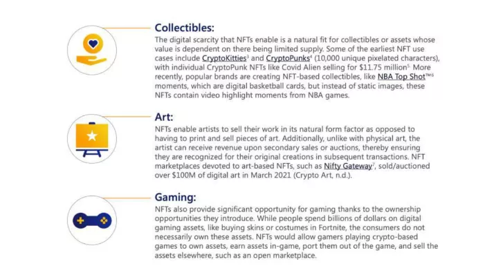 Visa在宣佈購買並收藏NFT數字藝術品 CryptoPunks 後緊接着發佈了NFT 白皮書。Visa 認為 NFT 的主要應用場景包括收藏品、藝術品和遊戲,而這些場景與元宇宙的實驗場景相吻合。