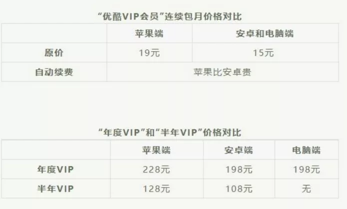對內容提供方來説,針對不同平台的收費規則和實際收益就要受到影響。此前在上海市閔行區消費者權益保護委員會對軟件會員收費情況的一項調查中,發現存在不同平台收費不同的情況。