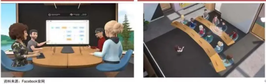 現如今為了解決用户居家辦公不可避免產生的疏離感和比起線下在一起合作的親密度的問題,Facebook提出了在Workrooms裏打造虛擬辦公室的解決方案。通過使用化身(avatar)參加到這個公共空間,用户可以實現比原本枯燥的“視頻牆“更豐富的交流體驗。甚至可以進行把idea直接生成虛擬對應物的頭腦風暴。