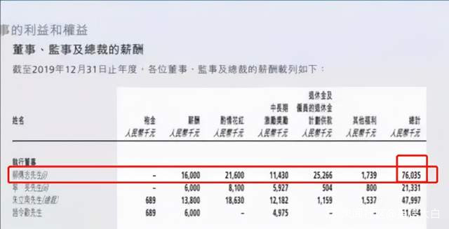 2019年是柳某退休前最後一次拿薪水的一年,然後這一年柳某拿了7603萬元的薪水。
