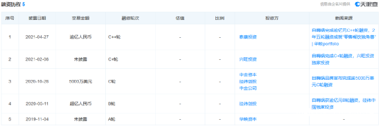 天眼查數據顯示,自熱速食賽道頭部玩家“自嗨鍋”,2年獲得5輪融資,僅2021年已獲得兩筆融資,其中C++輪融資金額逾億人民幣。