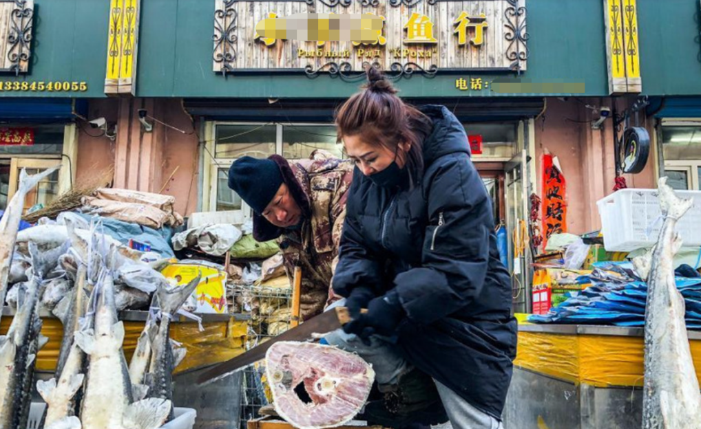 如果是特別大的海魚,200多斤那種,攤主就得化身木匠,把凍魚鋸開賣。