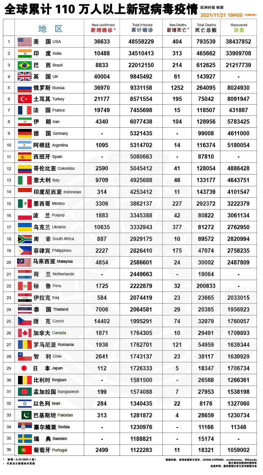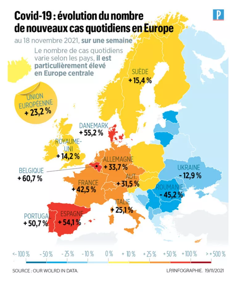 11月21日,法國政府發言人阿塔爾在歐洲一台新聞台表示:“第五波疫情正以閃電速度蔓延。”但是他強調,暫時無需任何封禁措施。