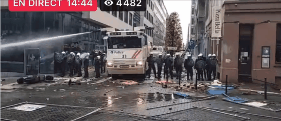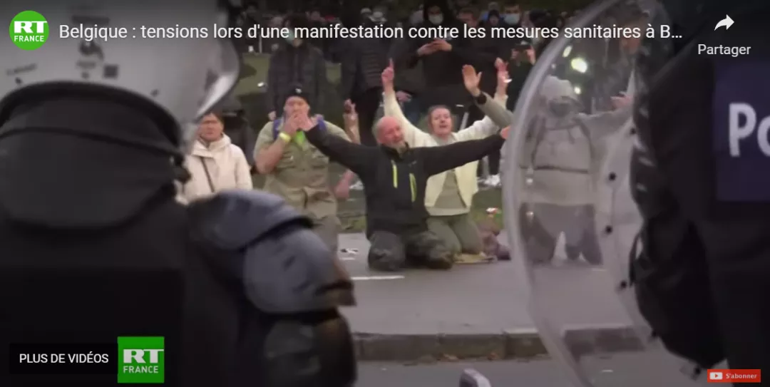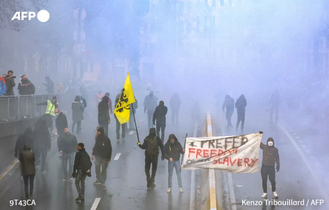 21日,**在比利時首都布魯塞爾,近3.5萬人參加名為“一同為了自由”(Together for Freedom)示威活動,以抗議防疫限制。**示威現場,抗議者和警方衝突不斷。