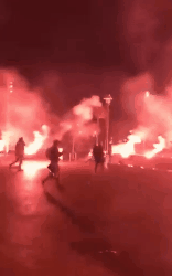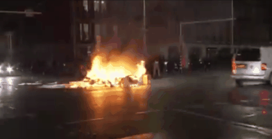 據荷蘭警方,有數百人向警察投擲石塊,並放火燒車。還有人向救護車扔石塊。