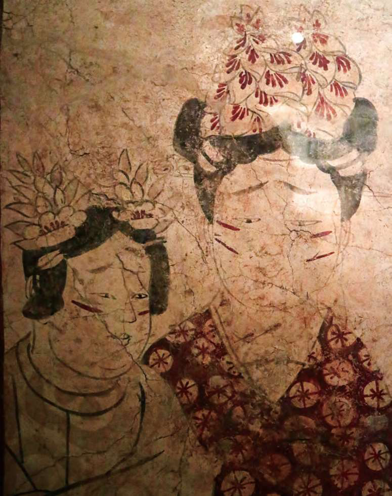 到了遼代更為誇張,女性已不滿足於僅染黃眉,甚至將整個面部都塗黃,觀之如金佛之面,謂之“佛妝”。