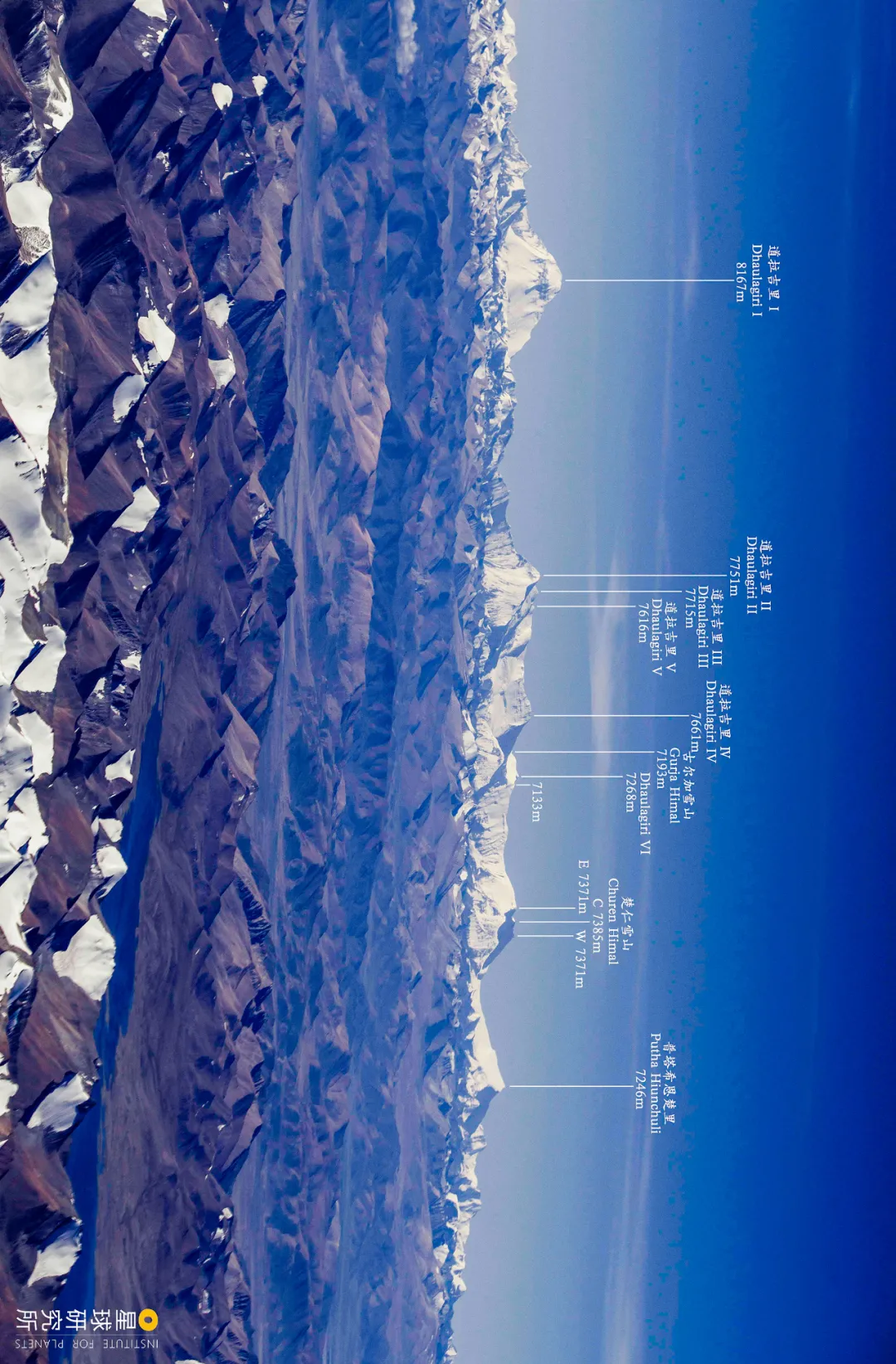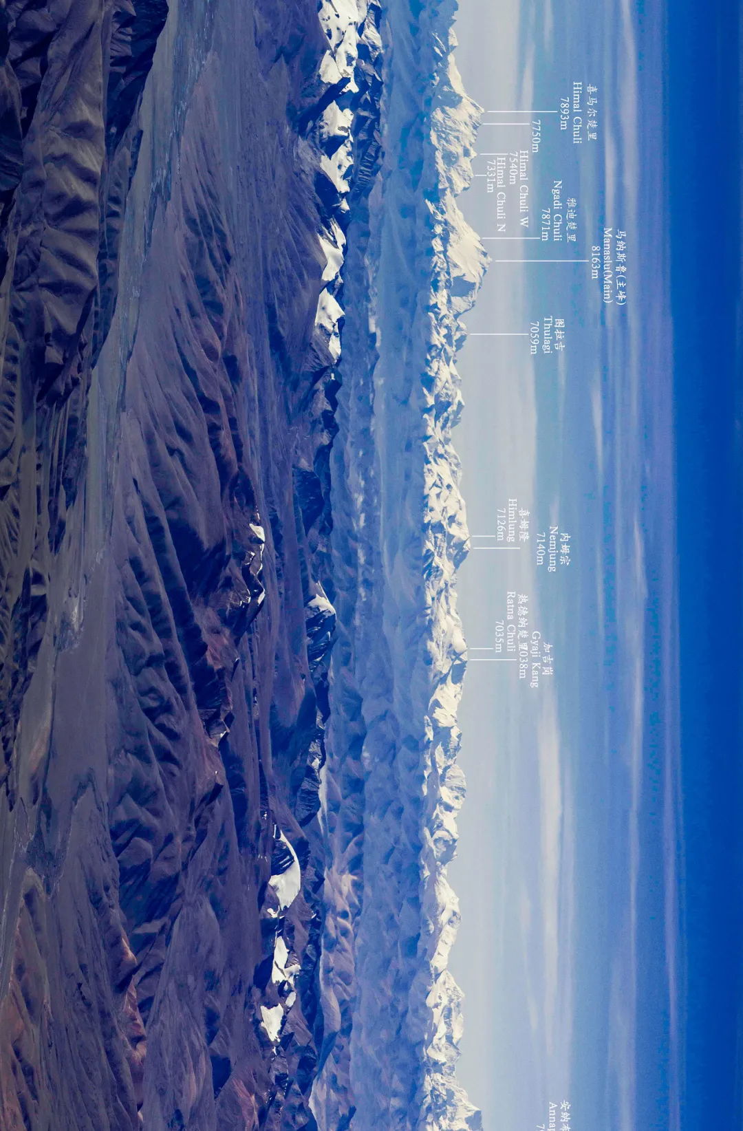 (請橫屏觀看,直刺蒼穹的喜馬拉雅羣峯,圖中標註均為7000m級以上山峯,攝影師@行影不離;標註@行影不離&王申雯&陳志浩)