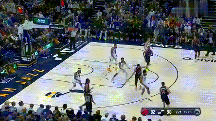 第二件事,尺寸在攻防兩端帶來的不同體驗。這幾年,蓋伊的運動能力已經有下滑的趨勢,但跟矮的奧尼爾,慢的博揚,速度和強壯度都一般的英格爾斯相比,蓋伊在體型、對抗和機動性結合上還是更好的。他有持球底子,能抓一抓錯位,防守端對一下對手的大體型前鋒,還能參與一些護筐,保護籃板。這些內容在過去的爵士,不可能在同一個球員身上實現,所以蓋伊有獨一無二的價值。你能感受到蓋伊的尺寸,他能罩住對面2米以上的前鋒,在刷卡或者保護籃下時貢獻存在感,然後在抓到錯位時,讓爵士體驗一下,中鋒之外,還有人能佔到身高便宜的快樂。