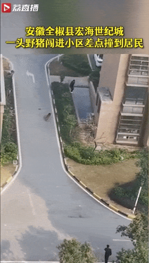 11月份,安徽滁州全椒縣,一頭野豬跑進小區後一路突飛猛進,差點撞倒幾位居民。