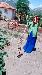 為了驅趕野豬,村民想出了各種法子,比如插上驅鳥的假人,敲臉盆,點小炮竹,在地裏徹夜播放狗叫聲,地周圍圍上漁網……