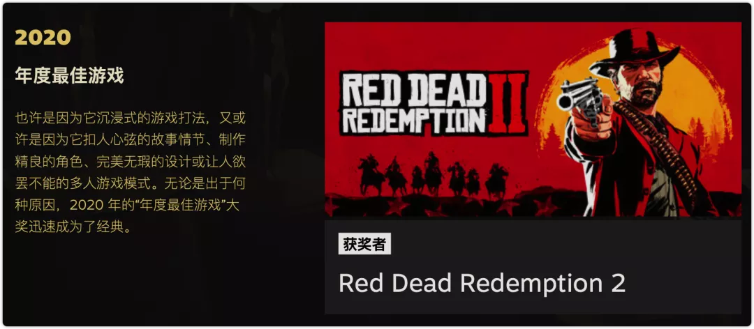《荒野大鏢客2》獲Steam2020年度最佳遊戲