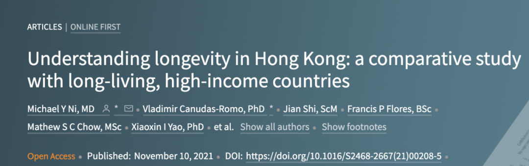 長壽的秘訣是什麼?在與18個高收入國家進行對比後,2021年11月10日,香港大學研究團隊在《柳葉刀-公共衞生》發表論文,剖析了香港居民長壽背後的因素,並稱這對發展中及發達地區人口健康有着重大意義。