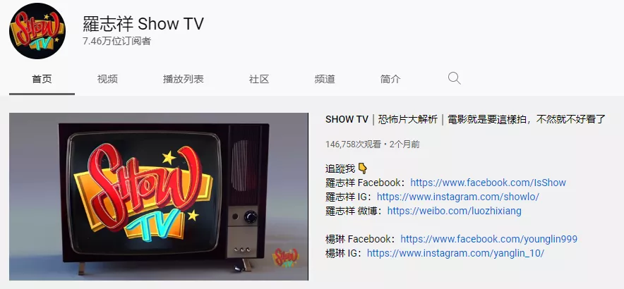除了在社交平台上露露臉刷刷存在感之外,他還在Youtube上建了個自己的頻道,叫“羅志祥 Show TV”,發佈一些個人參與制作的視頻短片。