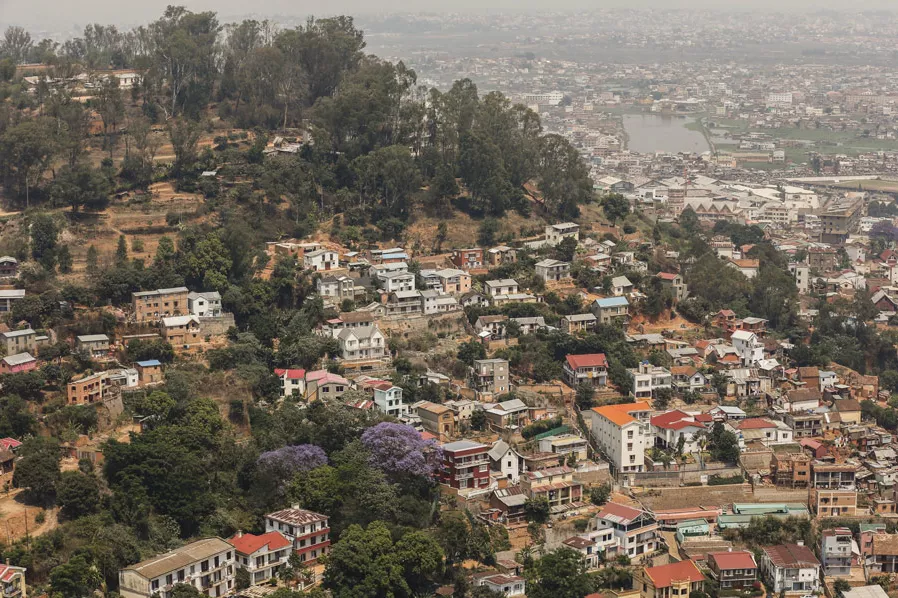 其首都塔那那利佛(意“遠方的城市”)是一座美麗的山城;街道在這座山城中上下環繞,錯落有致。我駐馬使館就在地處郊區的半山坡上。這是一座11層乳白色的建築,原是作為旅館建的,頗為氣派,在當地比較顯眼。因地勢較高,在院內就可鳥瞰全城,一覽無餘,號稱“全景旅館”。