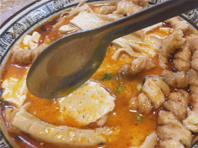 因為要喝酒,火鍋都很耐煮,牛肉、牛筋和牛雜通常都是事先滷好的熟肉,在加了牛油、豆瓣醬、大葱和白胡椒的湯裏一滾,吃到嘴裏又香又辣。