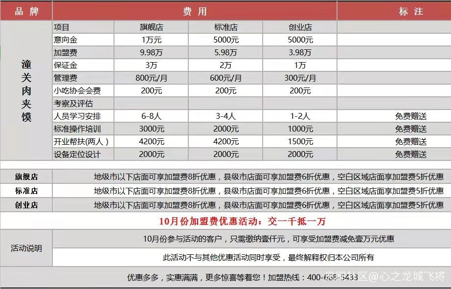 加盟費價格 來源:潼關肉夾饃協會微信公眾號