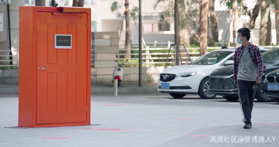 這位博主的團隊在街頭上放置了一個橙色的門,剛開始的時候這扇門沒有任何的動靜,只是由於顏色鮮豔再加上不太合適的放置地點,吸引了不少路過的行人的視線。