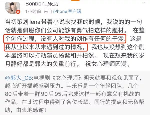 還有編劇更好笑,她説自己從業這麼多年,第一次遇到沒有干涉創作的團隊。