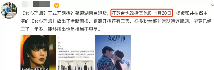 還有爆料説,這劇想在江蘇上來着,結果人家又安排了其他劇。
