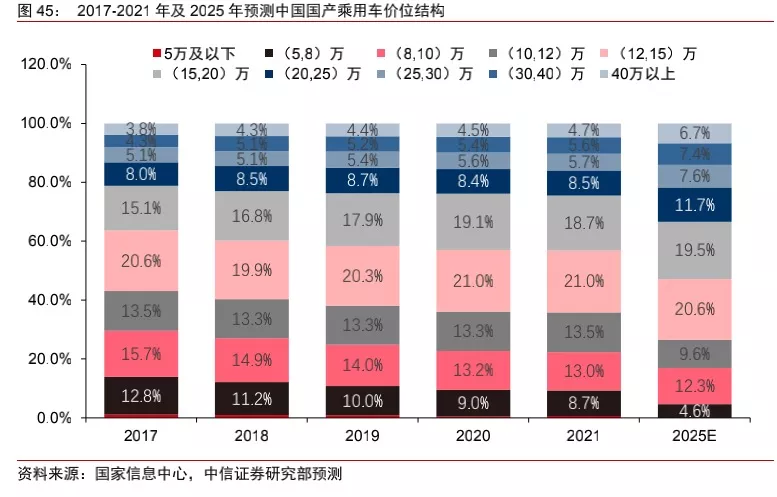 2020年,我國有56.5%的乘用車車主在此區間消費,如加上15-20萬市場,整個佔比可達70%,而15-20萬也被市場視為下一個實現滲透率高增長的核心區間,真正的競爭將始於那時。