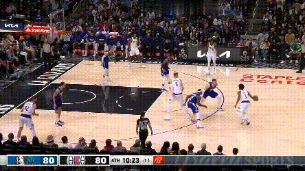 盧有個好處,他雖然會做一些失敗的嘗試,但失敗之後往往也能做出合適的調整。第四節,快船把比賽拖入加時的關鍵,不只因為獨行俠打得保守,也是快船防守策略的效果,他們沒有直接夾擊東契奇,而是選擇了先換防,等東契奇準備單打時再突然夾擊,**也就是當初湖人防哈登用的延遲夾擊。**這個辦法使得獨行俠後續處理時間非常侷促,沒有辦法耐心的傳導出優質機會,於是快船頻頻防守成功。