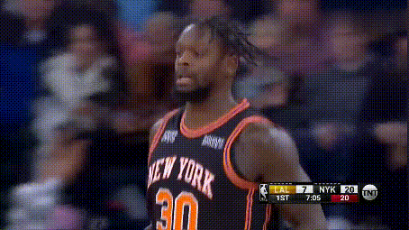 所以,尼克斯的進攻經常給人一種“隔靴搔癢”的感覺,不夠痛快。蘭德爾就像個收費站,不管打什麼戰術,球都得從他這刷一道卡。由於籃下有中鋒堵着,蘭德爾內傳內的技術又沒有特別強,結果必然是蘭德爾把大量回合打成中距離跳投,那麼他的中投效率就會很大程度的影響尼克斯的進攻。本賽季,蘭德爾在中距離的命中率掉到了35%,沒能維持上個賽季的高光,結果當然是,他持球打效果反而不好。