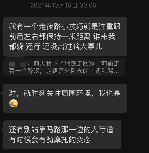 依然會時不時互相分享一些獨自走夜路的防範小技巧。