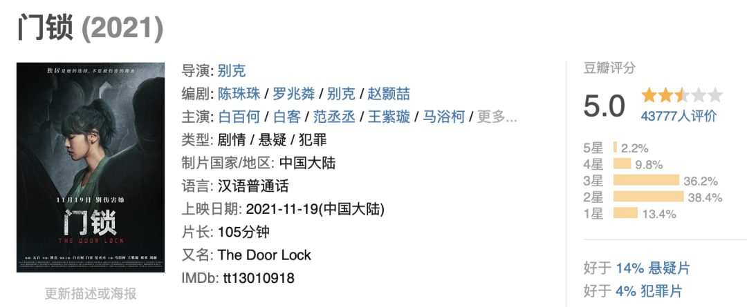 這是最近由白百何主演的電影《門鎖》的劇情。