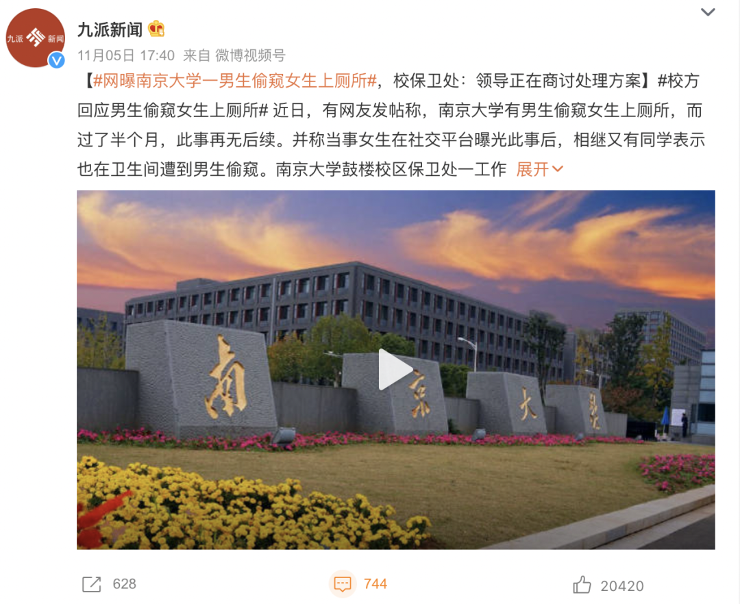 有個別男生偷窺女生上廁所,且多次被抓現形。
