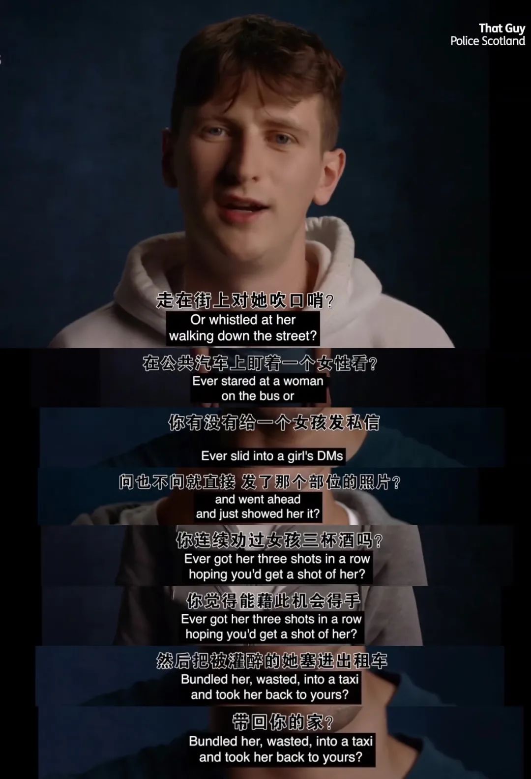 前陣子蘇格蘭發佈了一則公益預防性暴力的宣傳片她姐很是贊同。