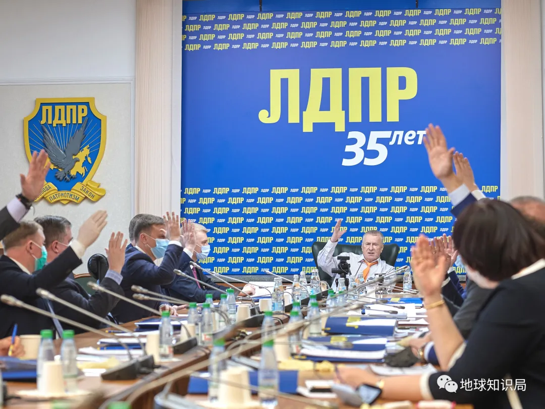 **有政黨。**俄羅斯自由民主黨,在2021年俄羅斯杜馬選舉中得票7.49%,是僅次於執政黨統一俄羅斯黨和俄羅斯共產黨的議會第三大黨。