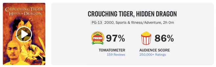 2000年上映的《卧虎藏龍》,是一部由華人執導、華人配樂、華語明星出演、在中國取景的中國傳統武俠電影。
