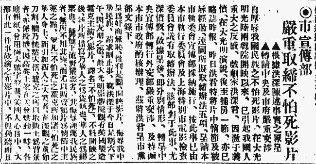 1930年,號稱“遠東第一影院”的上海大光明電影院,上映了好萊塢拍攝的辱華電影《不怕死》。