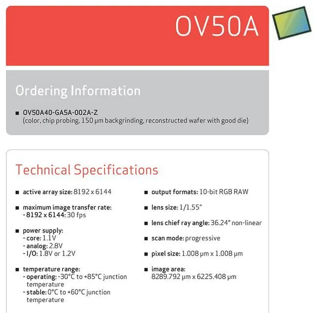 此時豪威的出現,可以説是給華為提供了一個新選擇,果不其然,在今年新發布的華為 P50 系列上,主攝已經換成了豪威的 OV50A。