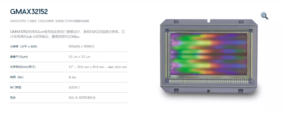 更可怕的是,在長光辰芯的官網,託尼還找到了一枚1.52億像素的中畫幅CMOS。。。
