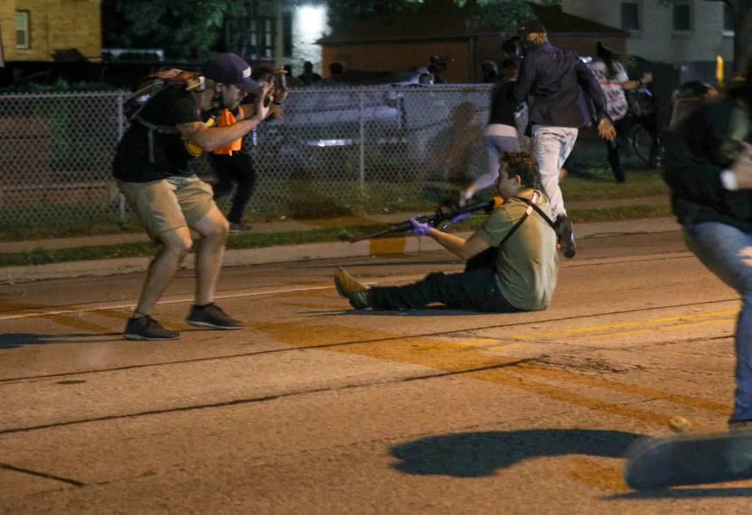 同時,在向警方移動過程中再次開槍的情景也同樣符合這個條件:追逐裏滕豪斯的數名抗議者在裏滕豪斯摔倒後數次攻擊他,傷者GaigeGrosskreutz手上還持有一把手槍。