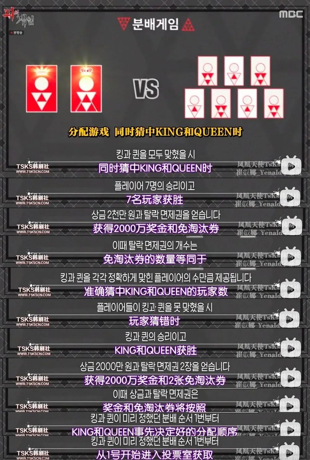 7名普通玩家如果投票找到KING和QUEEN,就可以獲得2000萬以及人手一張淘汰券。