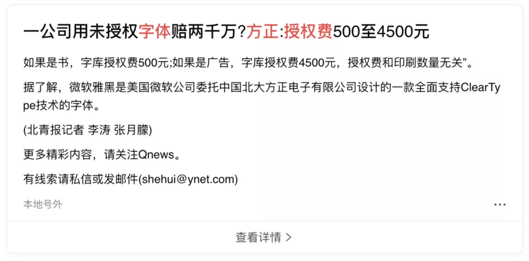 本以為用的是電腦自帶字體,項目還沒落地,方正就先找過來了: