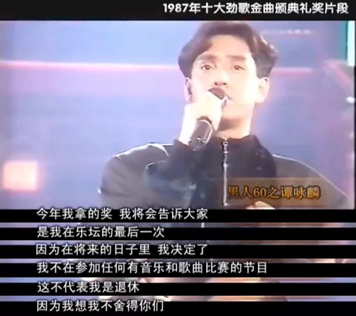 1988年年初,譚詠麟在頒獎禮上宣佈,自己以後不再參加任何跟音樂有關的比賽節目了。
