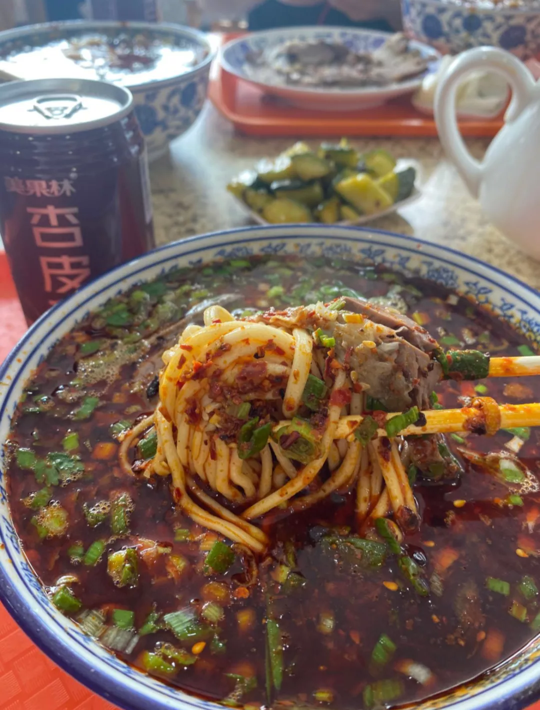 吾穆勒蓬灰牛肉麪和黃河啤酒廠門口的磨溝沿牛肉麪是劉堃的最愛,每週都得報道三四回,不然打發不了肚子裏的蛔蟲。