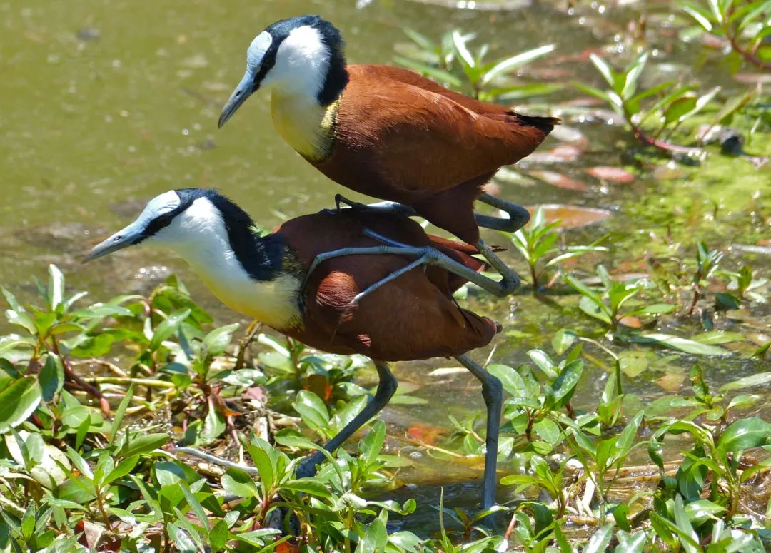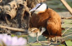 會像這樣“兩面夾雞”的不只是非洲雉鴴爸爸,其他種類的雉鴴,比如肉垂水雉(Jacana jacana)爸爸也會這麼幹,關鍵時候非常靠譜。